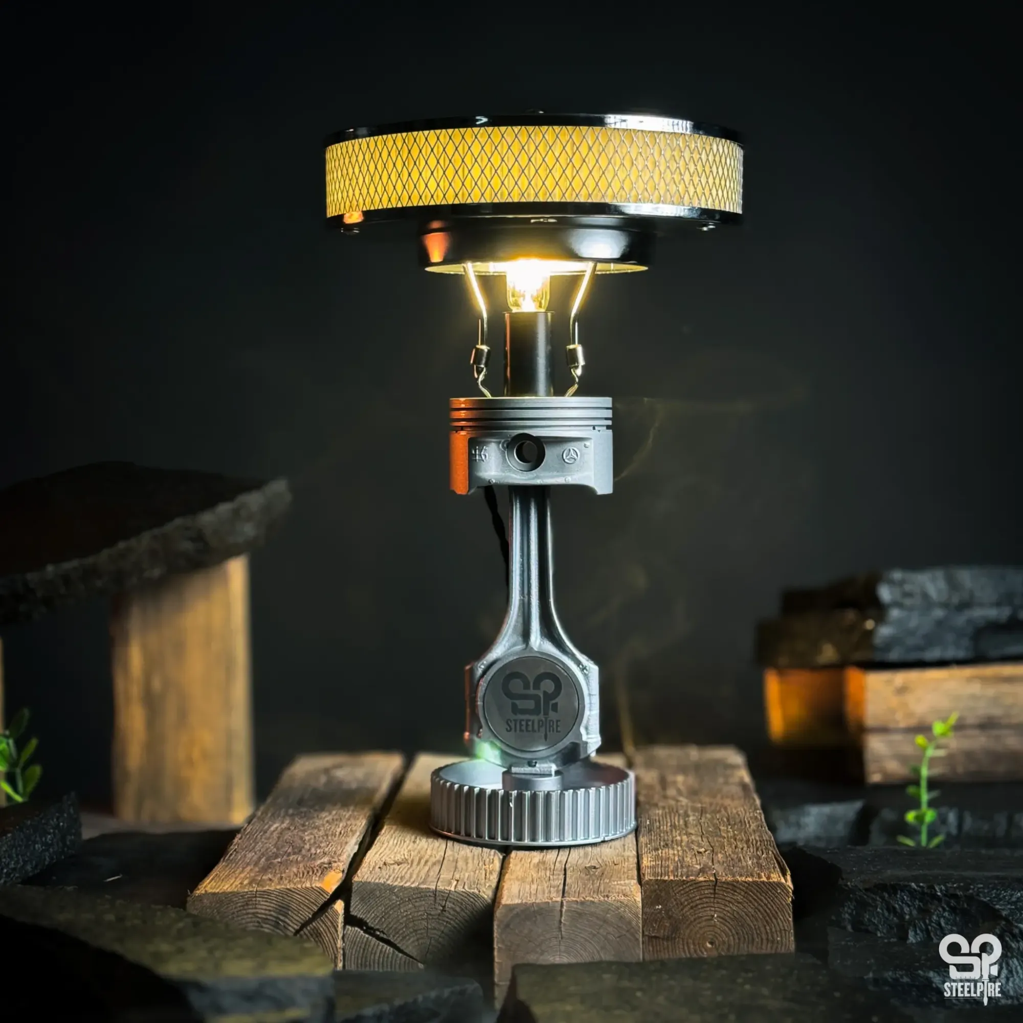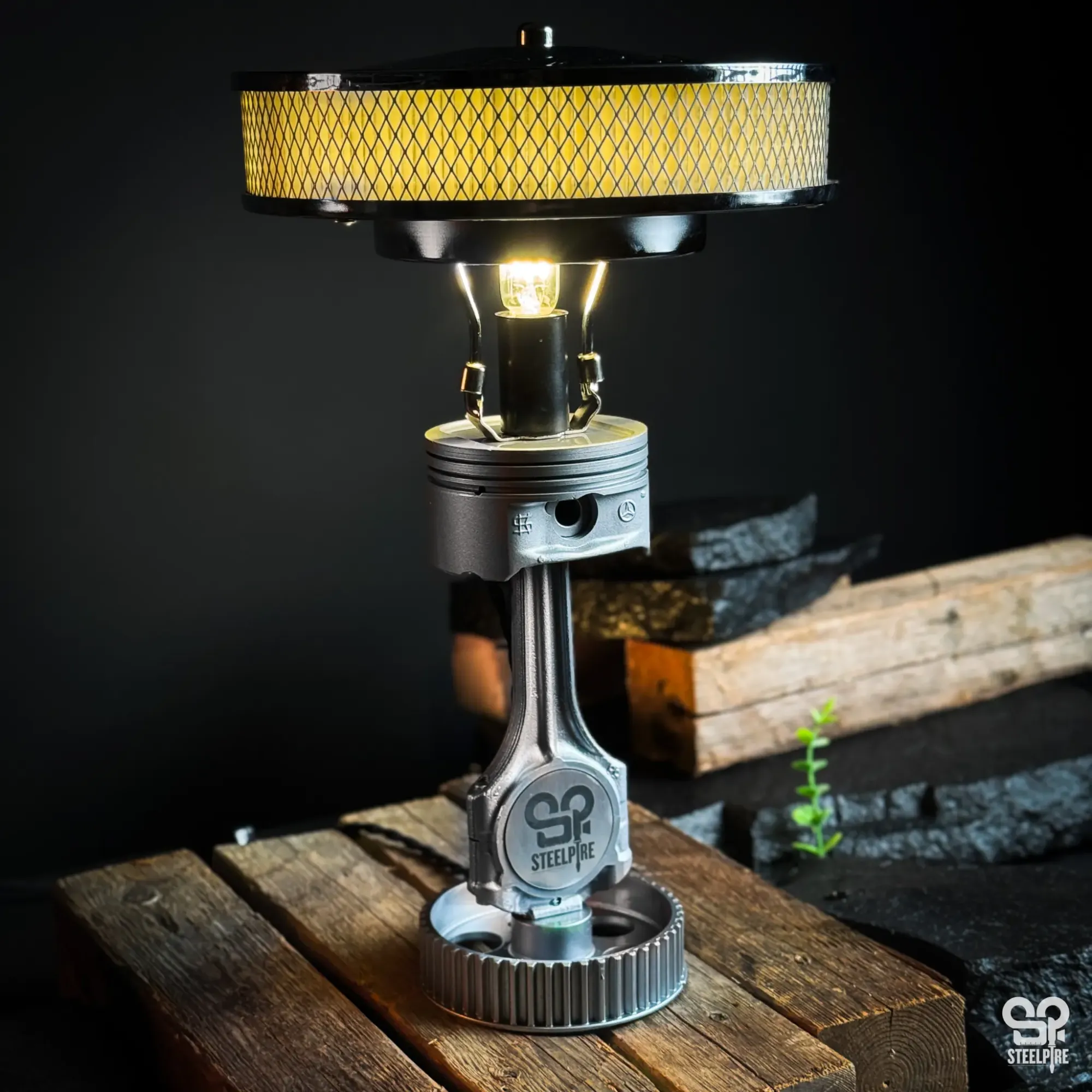Ez a lámpa valódi autóalkatrészekből készült, amelyek egykor több százezer kilométeren át egy autó működéséért feleltek. Minden darab egyedi, saját történettel.