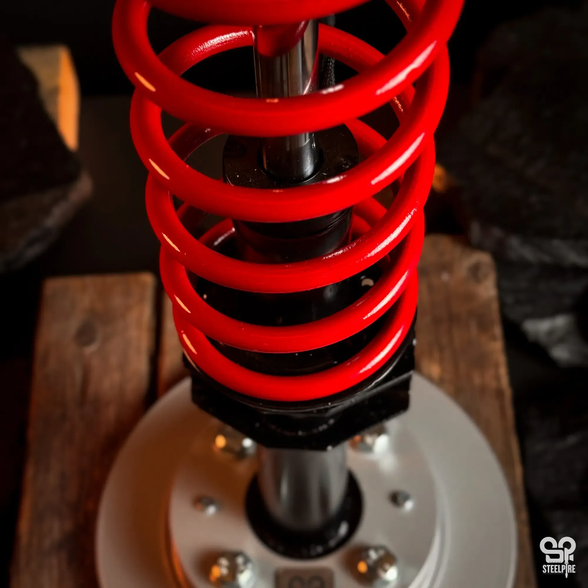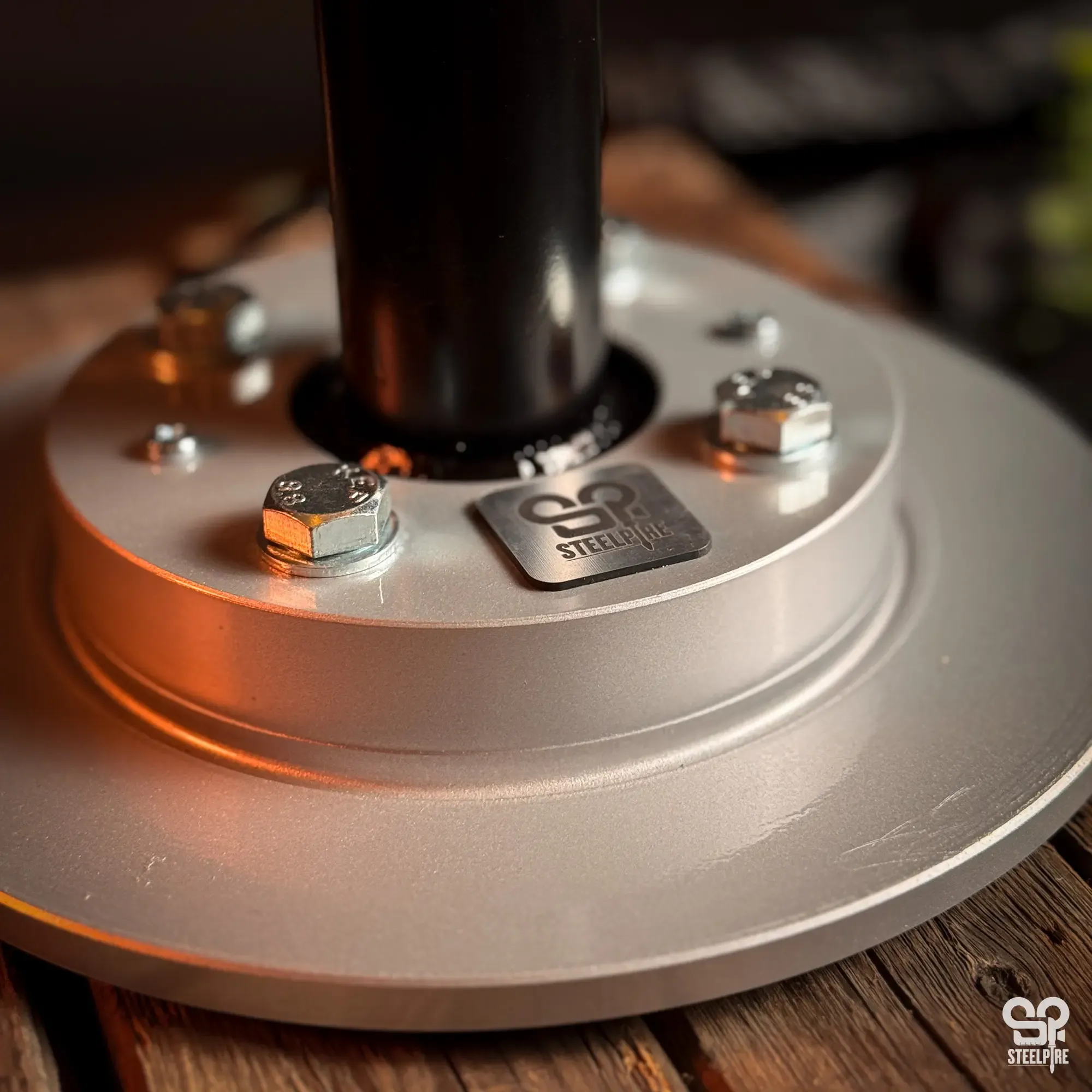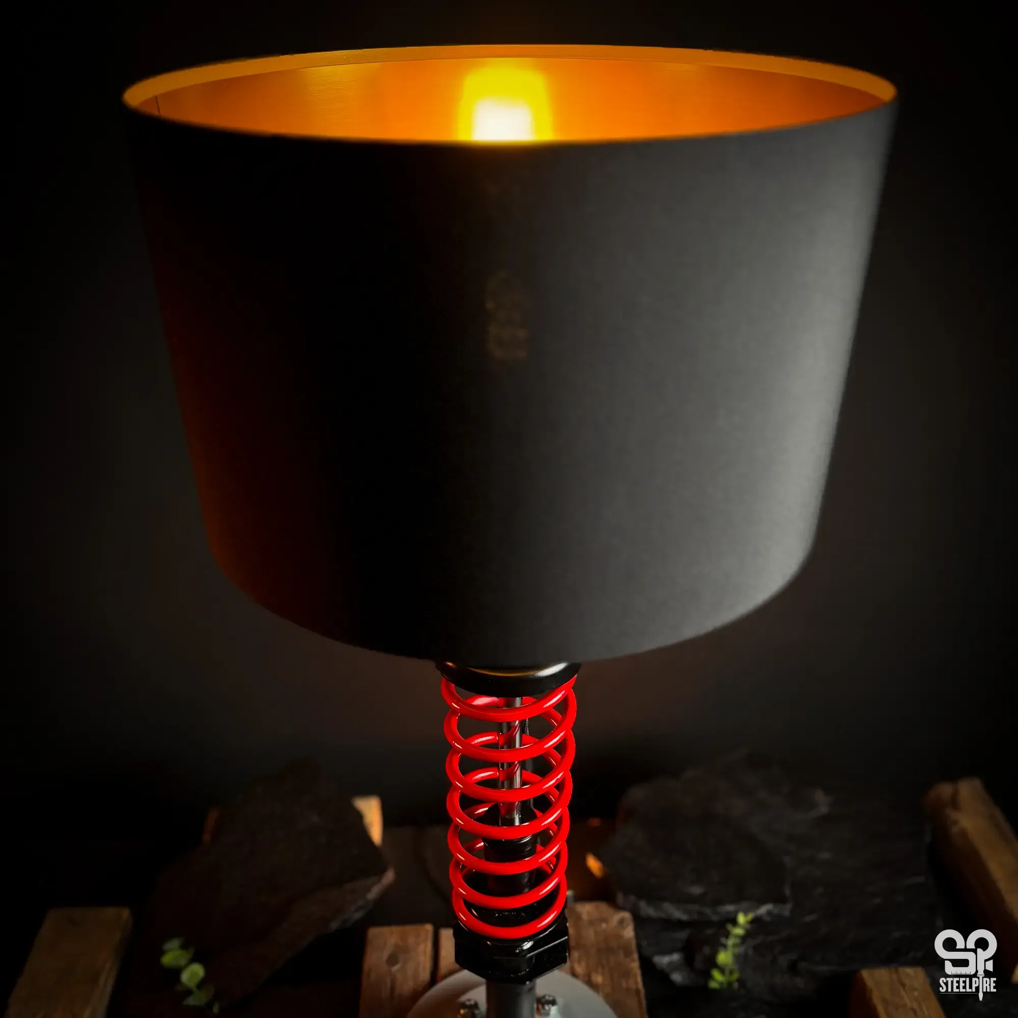 Egyedi asztali lámpa valódi autóalkatrészekből.