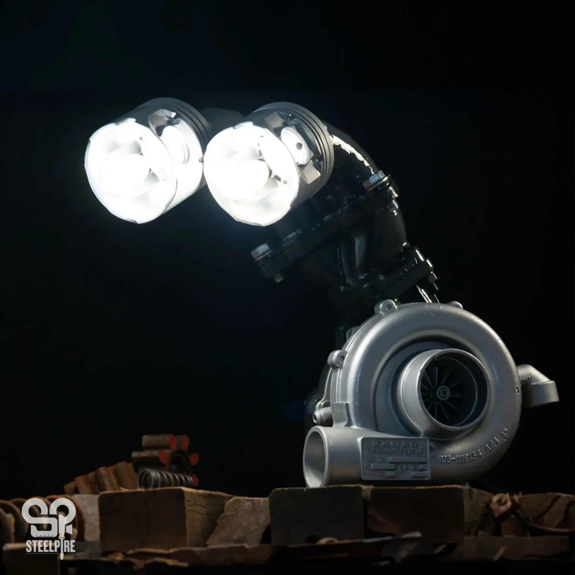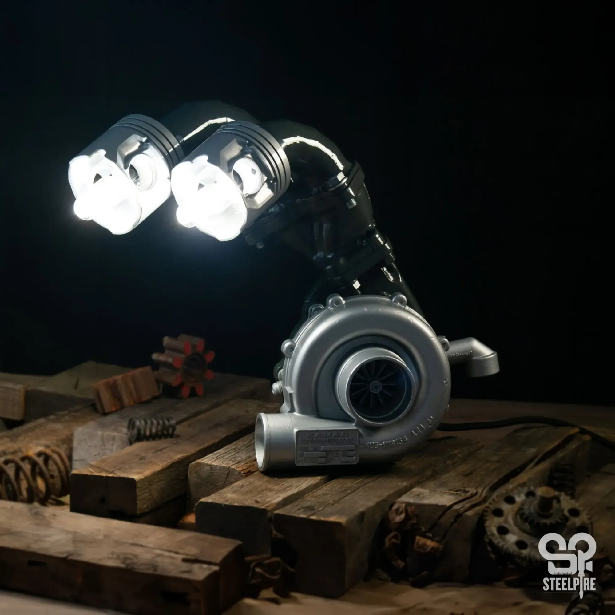 Egy valódi turbó-ból készült egyedi asztali lámpa